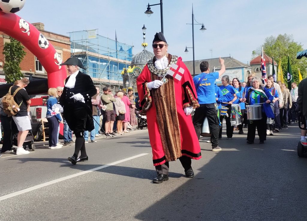 High Sheriff, Francis Burkitt DL, joins Cllr Andrew Woollard at the St George’s Fayre parade.